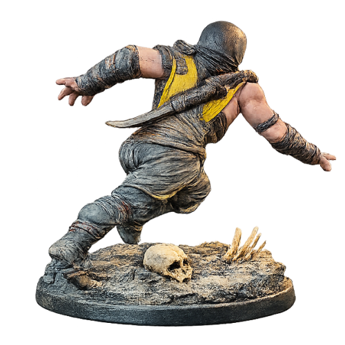 Inspirada no icônico guerreiro mascarado dos jogos de luta, esta miniatura traz toda a intensidade e presença de combate em uma peça dinâmica, detalhada e cheia de personalidade — perfeita para fãs da cultura gamer.