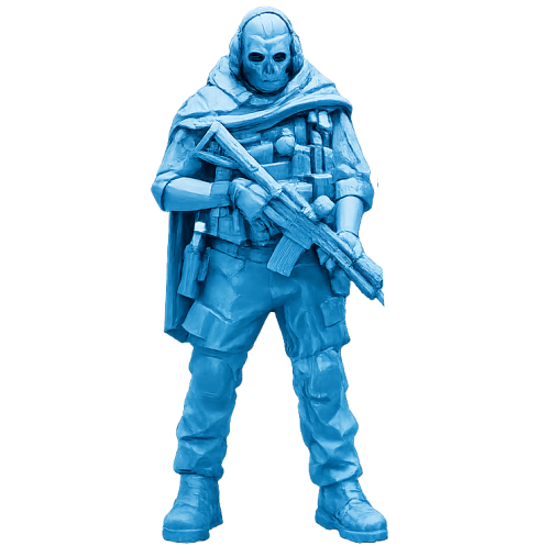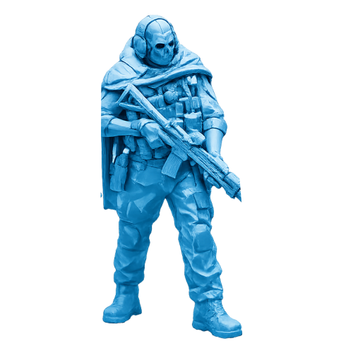 Com visual intimidador e postura estratégica, esta estátua retrata um operador tático equipado com máscara caveira, armamento detalhado e capa utilitária. A composição transmite força, disciplina e presença de combate, tornando a peça marcante para colecionadores do universo militar e action.