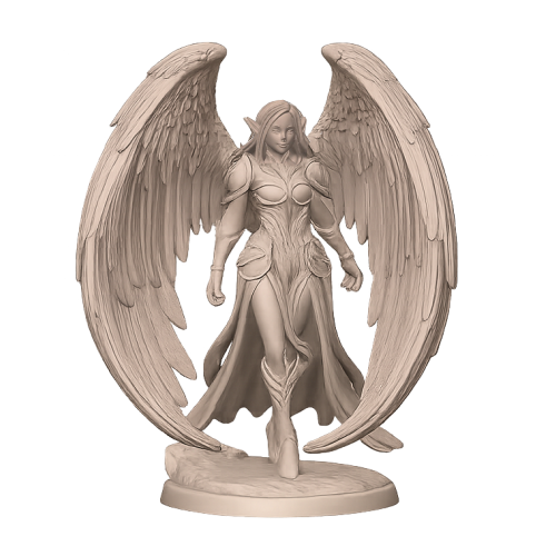 Produzida em resina de alta qualidade, a peça possui excelente definição nas asas, armadura e vestes, com acabamento limpo e visual premium. Com 10cm de altura, ela se destaca em qualquer prateleira, mesa gamer ou espaço geek.