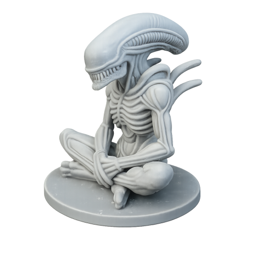 O Alien – Escultura Sci-Fi é uma peça inspirada na estética biomecânica que marcou o cinema de ficção científica. Em pose contemplativa, sentado sobre base circular, o modelo combina anatomia alienígena detalhada com presença minimalista e impactante.