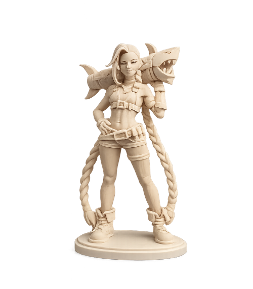 Inspirada na explosiva e imprevisível campeã de League of Legends, esta estátua da Jinx captura toda a sua energia caótica, atitude ousada e estilo marcante — perfeita para colecionadores e fãs do universo gamer.